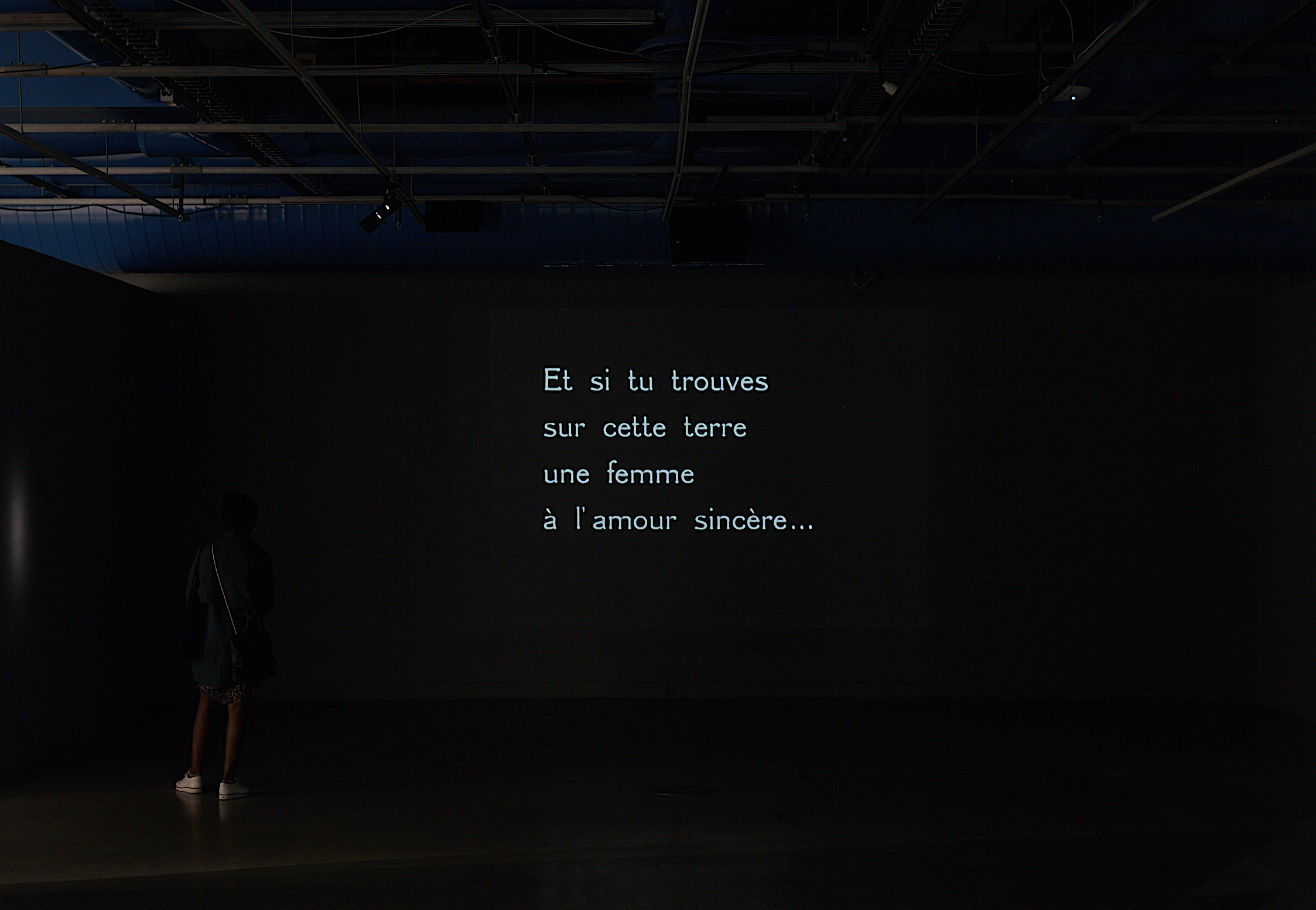 En suivant la constellation de poétesses sud-américaines tracée au sol par l’artiste et anthropologue Julieta Hanono, l’exposition rassemble plusieurs formes de vidéo-poêmes contemporains : comme cette « climate-fiction » de l’artiste Hoël Duret écrite et réalisée cette année en Nouvelle-Zélande, mais aussi le film afro-futuriste, tout a la fois plastique et littéraire, de Josefa Ntjam (Mélas de Saturne, 2020). L’écrivaine Juliette Mézenc et l’artiste Stéphane Gantelet se sont associés pour produire un étrange objet littéraire, Le Journal du brise-lames, fiction insulaire qui donne lieu a un livre et un jeu vidéo, ainsi qu’a une série de vidéo-poèmes. Le paysage proposé par cette promenade autour de l’île se poursuit avec un film-poème réalisé par l’artiste Thu-Van Tran au sud du Vietnam, et qui est lui-même basé sur un jeu de mots et même de lettres, ou comment passer de « Récolte » a « Révolte ». S’ajoute a cet ensemble le film surréaliste de Man Ray, L’Étoile de mer (1928), adapté d’un poême de Robert Desnos, pour finir par le très beau clip réalisé par Robin Lachenal pour le musicien Flavien Berger, Océan Rouge (2014), qui marque la proximité entre poésie et chanson, entre vidéo-clip et vidéo-poème.